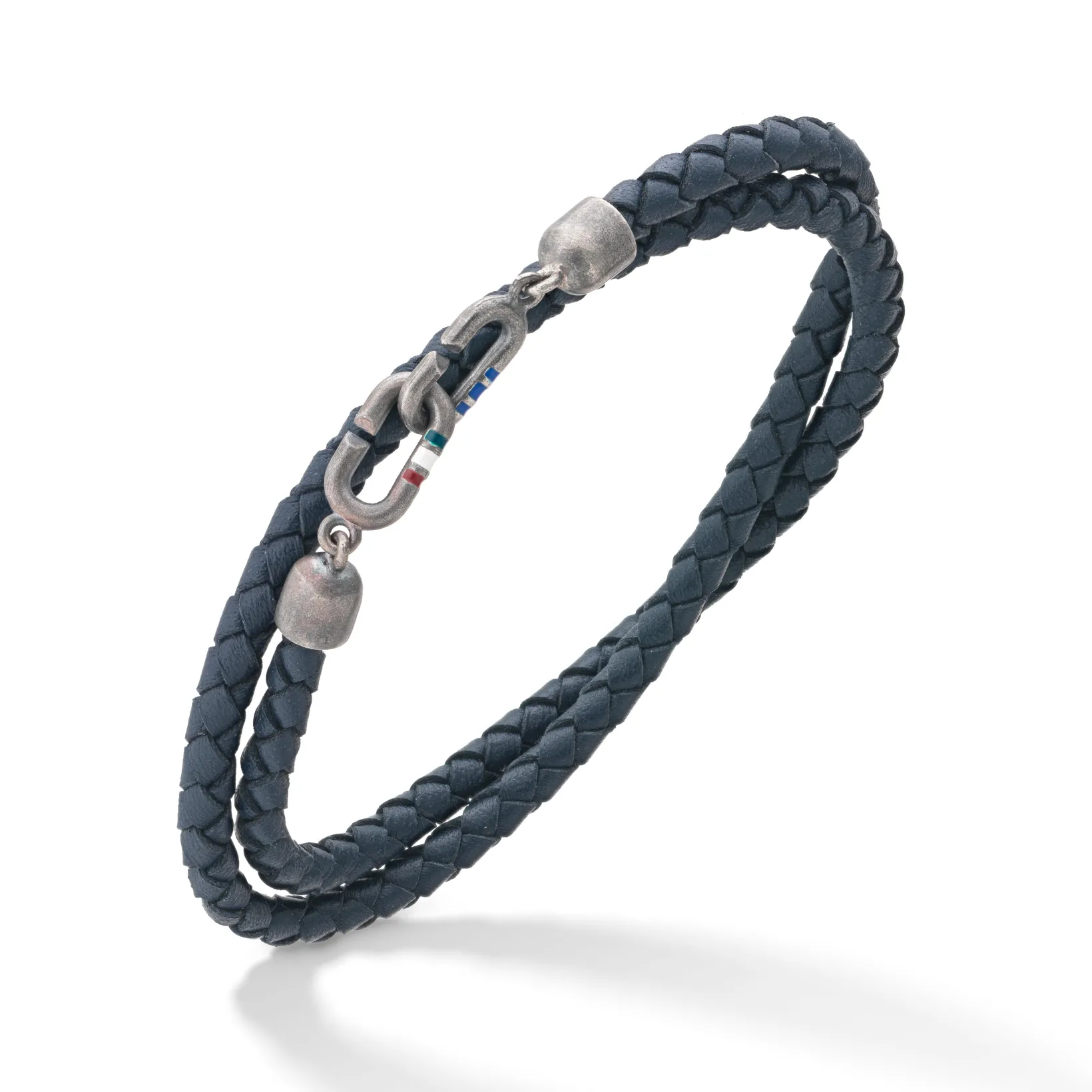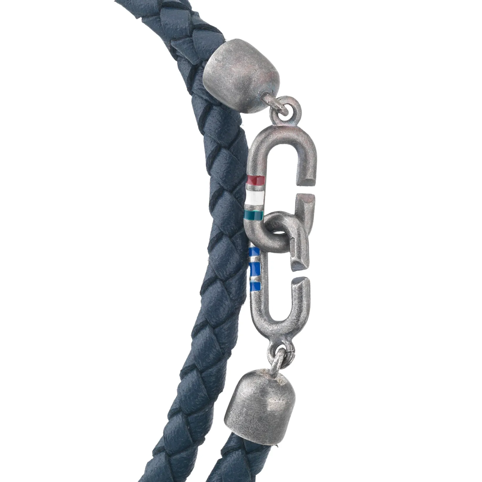 THE LINK Double Wrap Blue Enamel and Leather Bracelet
