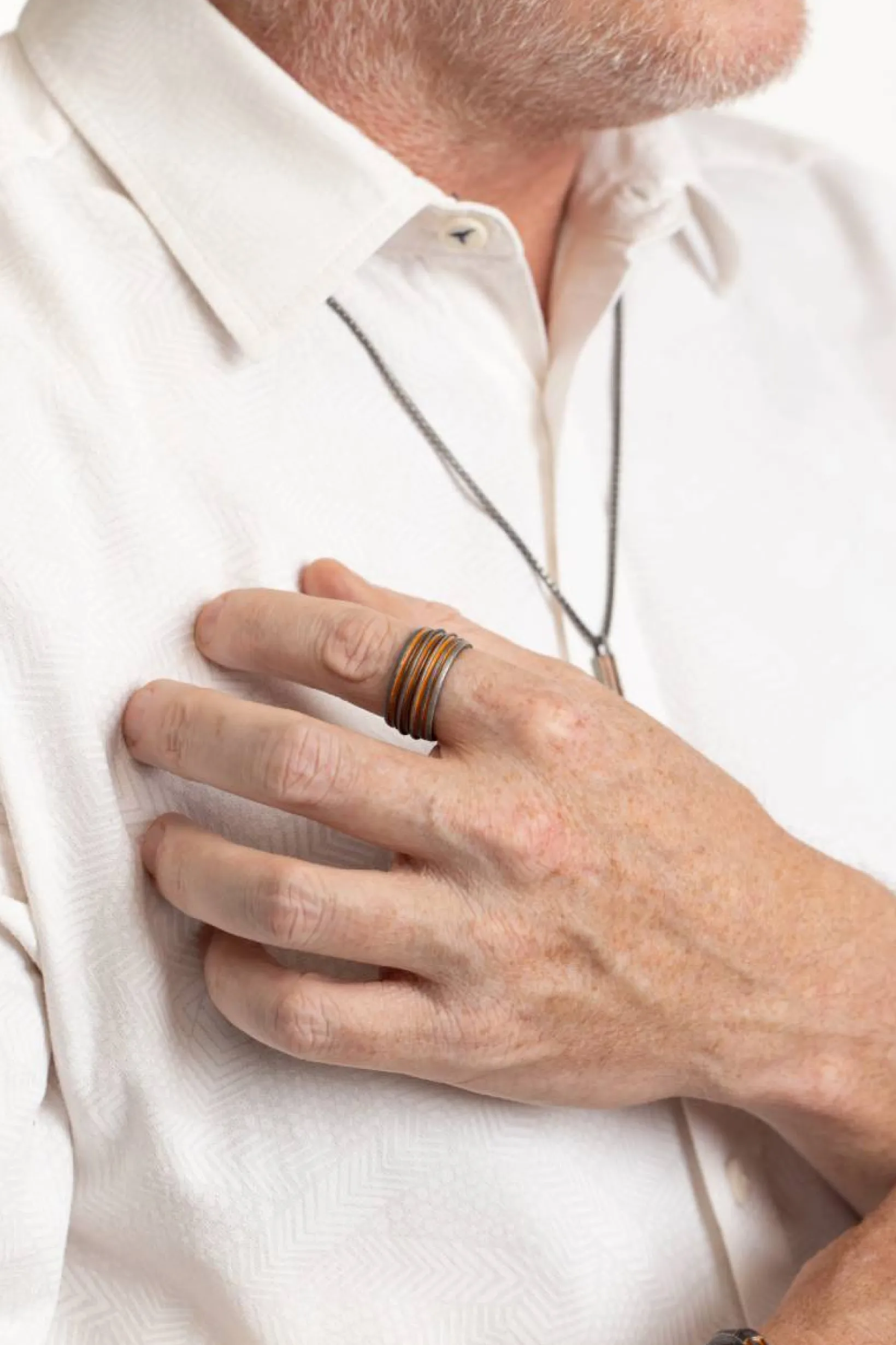 - Oxidized silver band for a sleek and modern aesthetic