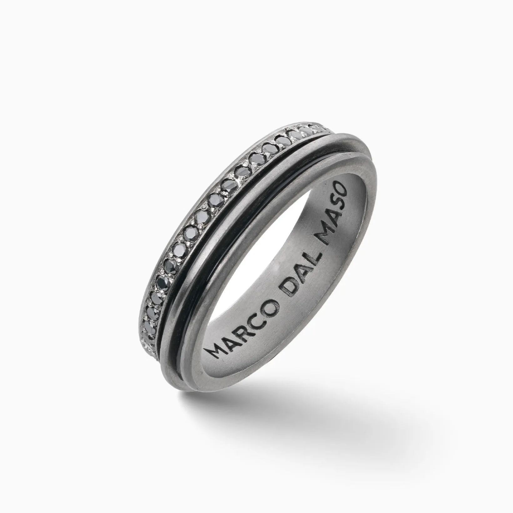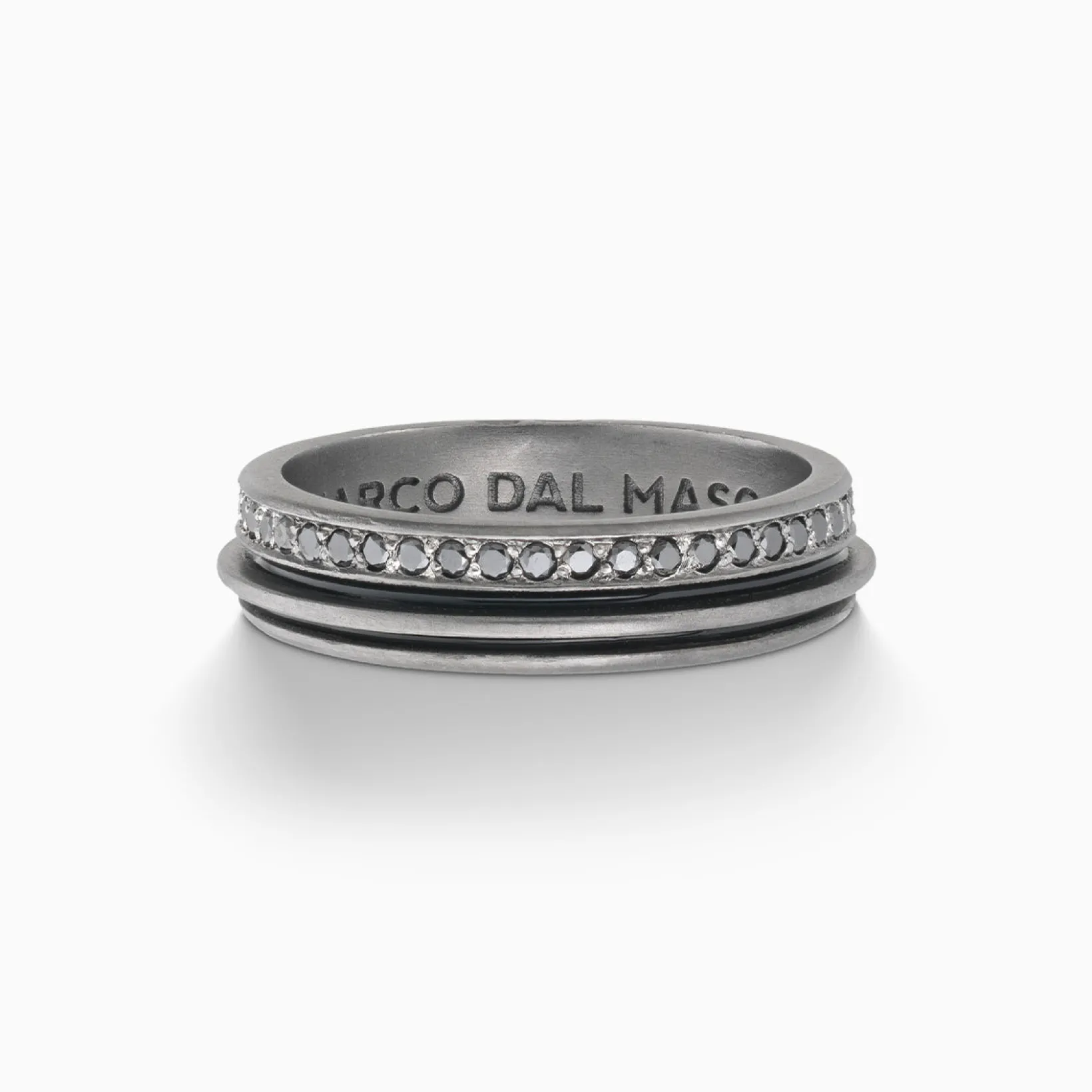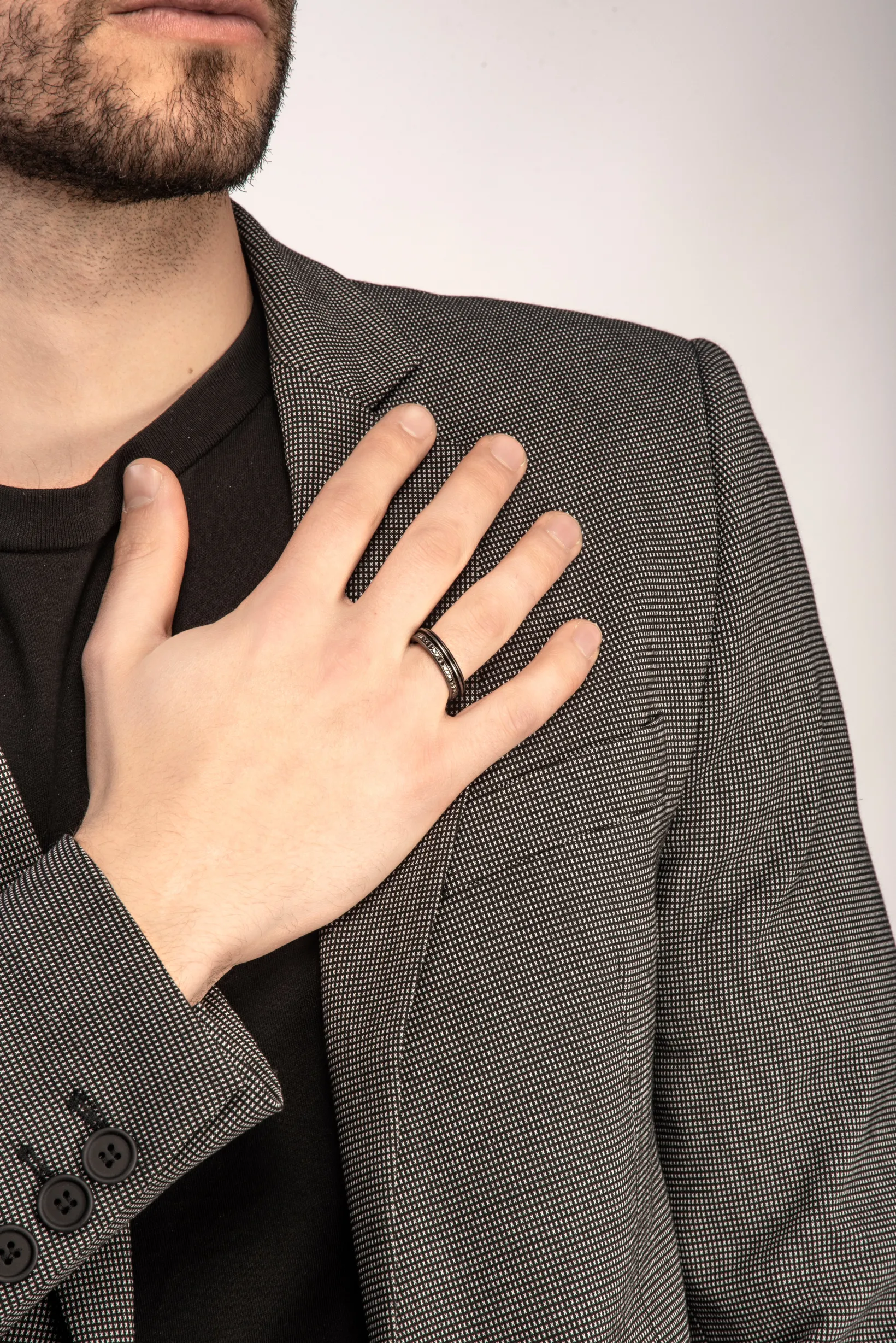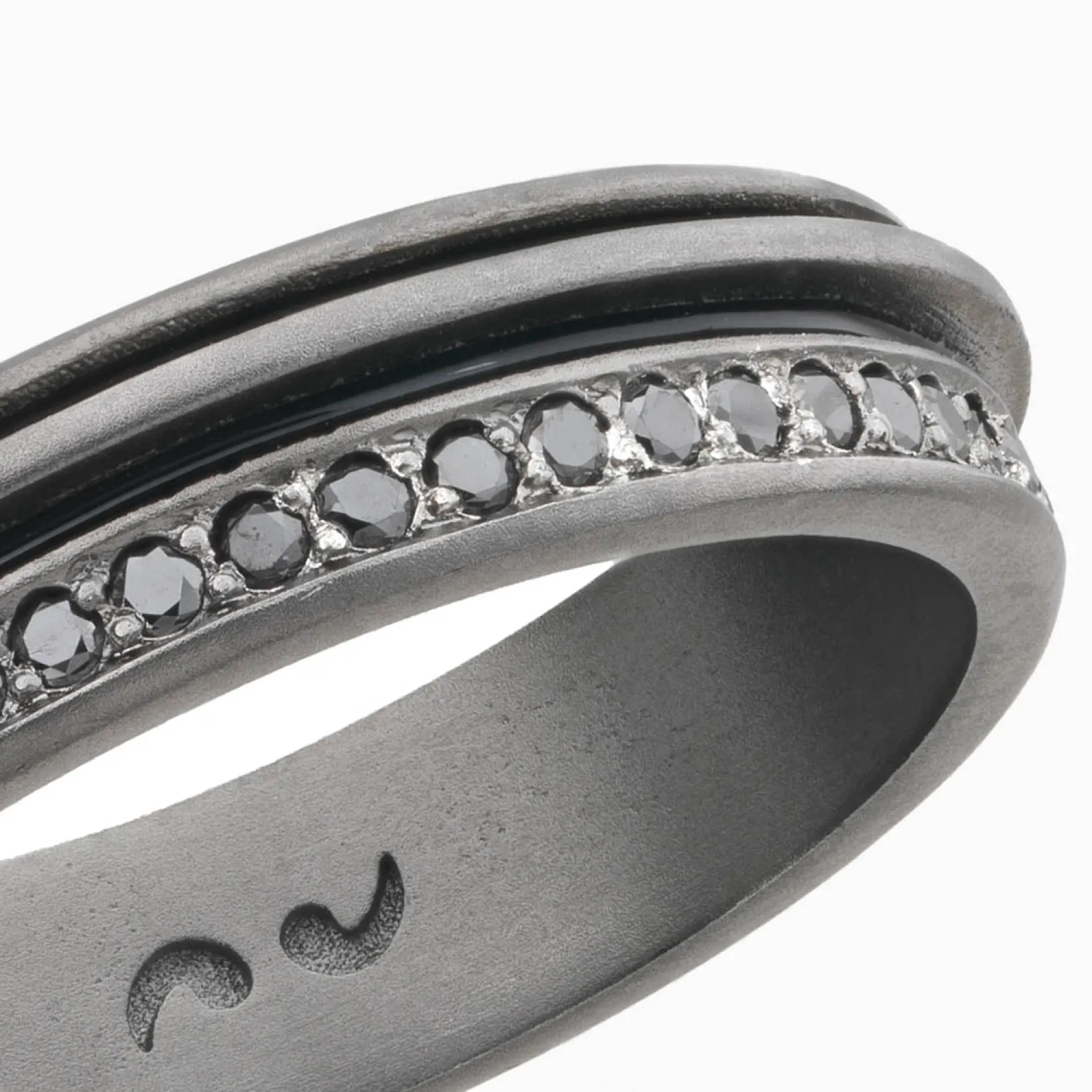 Acies Slim Triple Black Matte Silver Band: a statement of bold elegance. Crafted from black matte silver, adorned with black diamonds and black enamel, this band offers sophistication and edge in one sleek design.