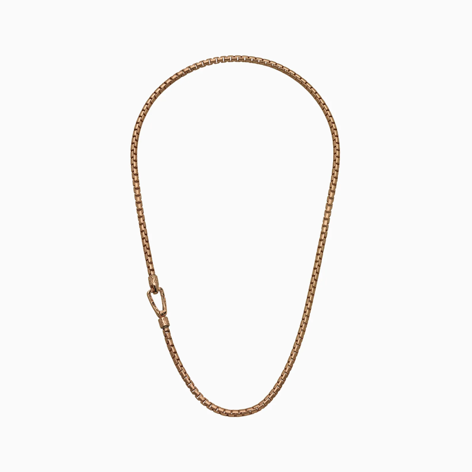 This ULYSSES Carved Tubular Necklace is crafted from 18K Rose Gold Vermeil, offering a luxurious design. The matte chain links contrast with the polished clasp, creating a refined look perfect for men who appreciate modern elegance.