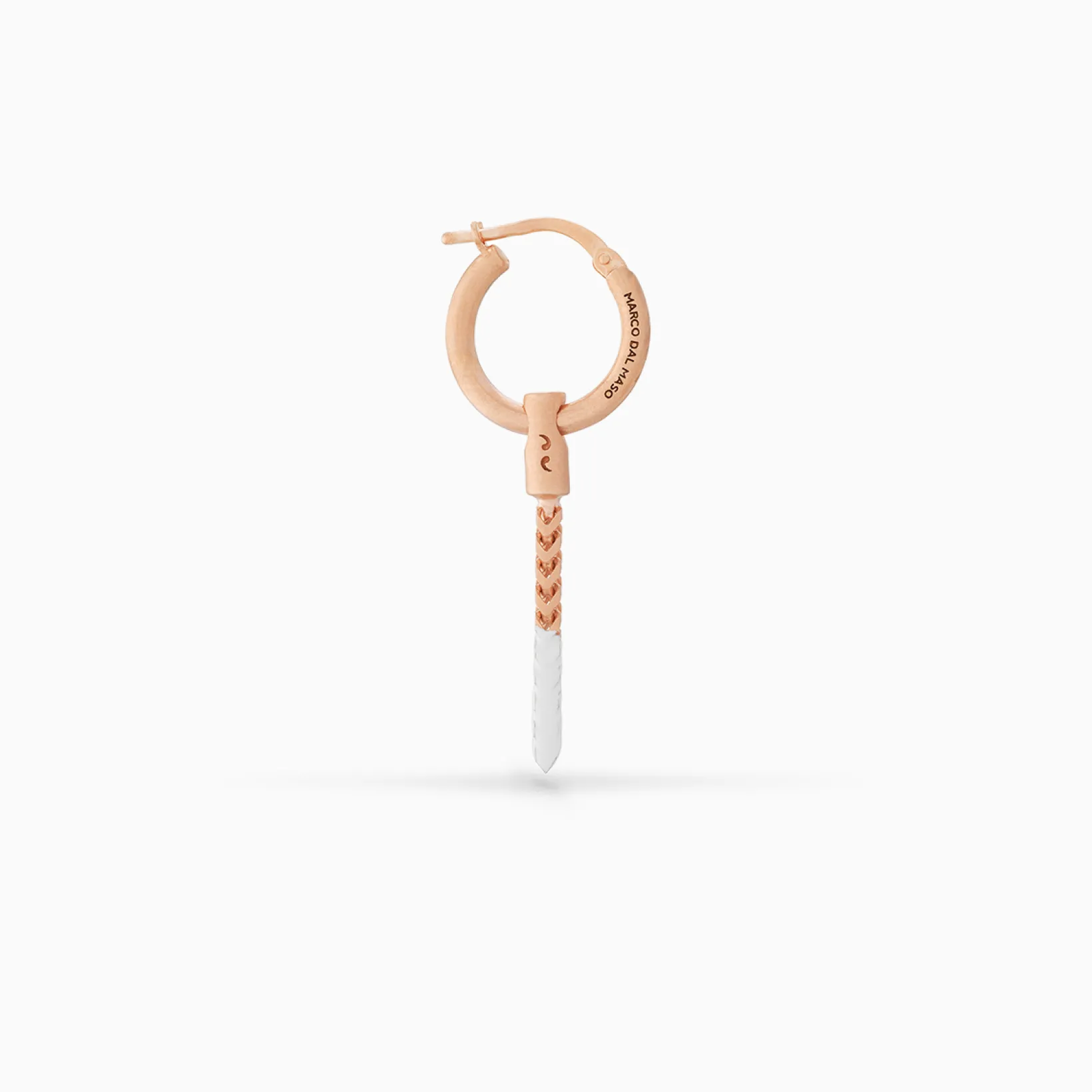 The ULYSSES Drop Dipped Earring with ivory enamel, crafted in 18K rose gold vermeil, offers a refined and elegant accessory. The warm rose gold contrasts beautifully with the soft ivory enamel, creating a modern and luxurious piece.