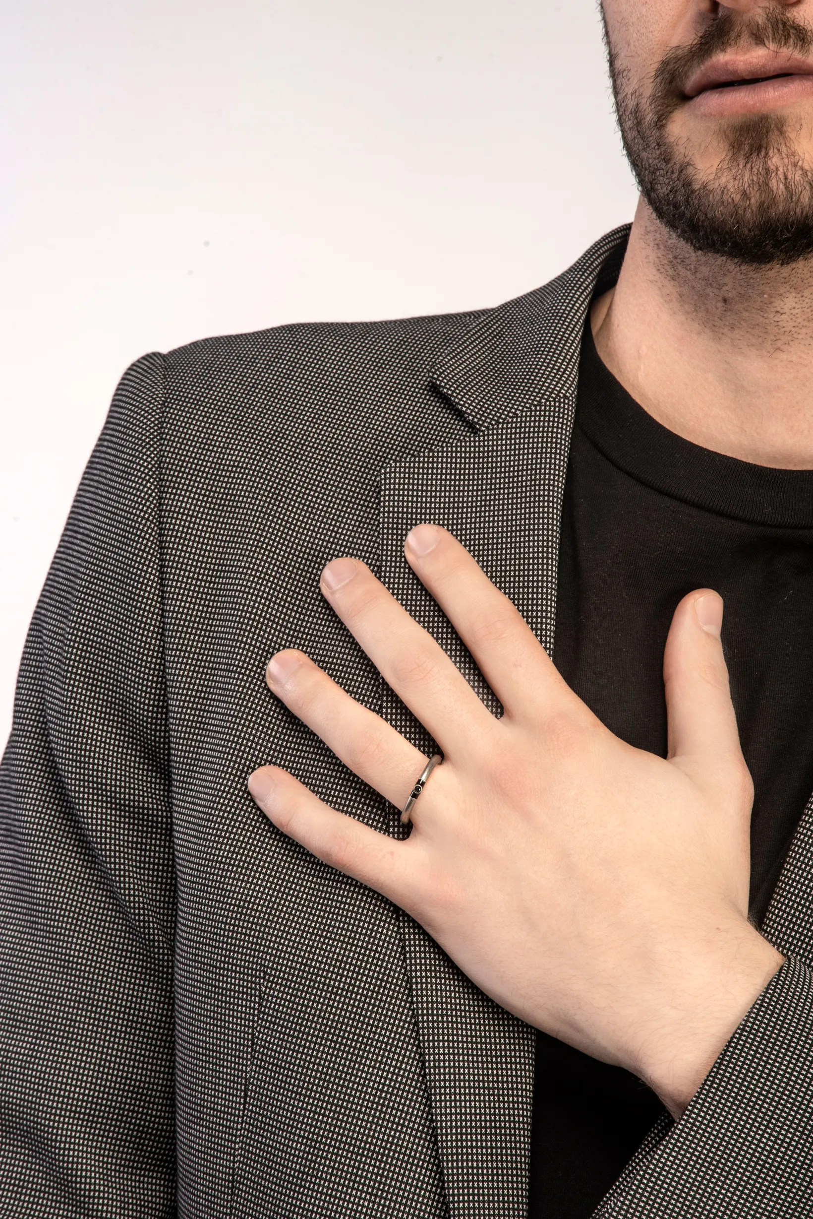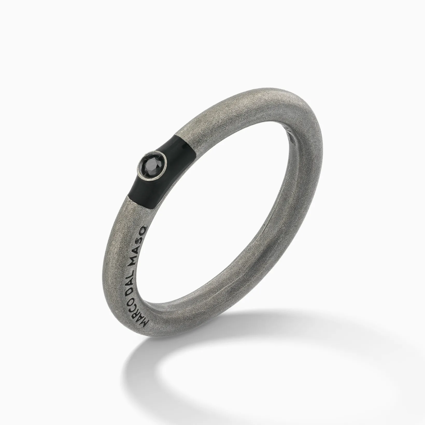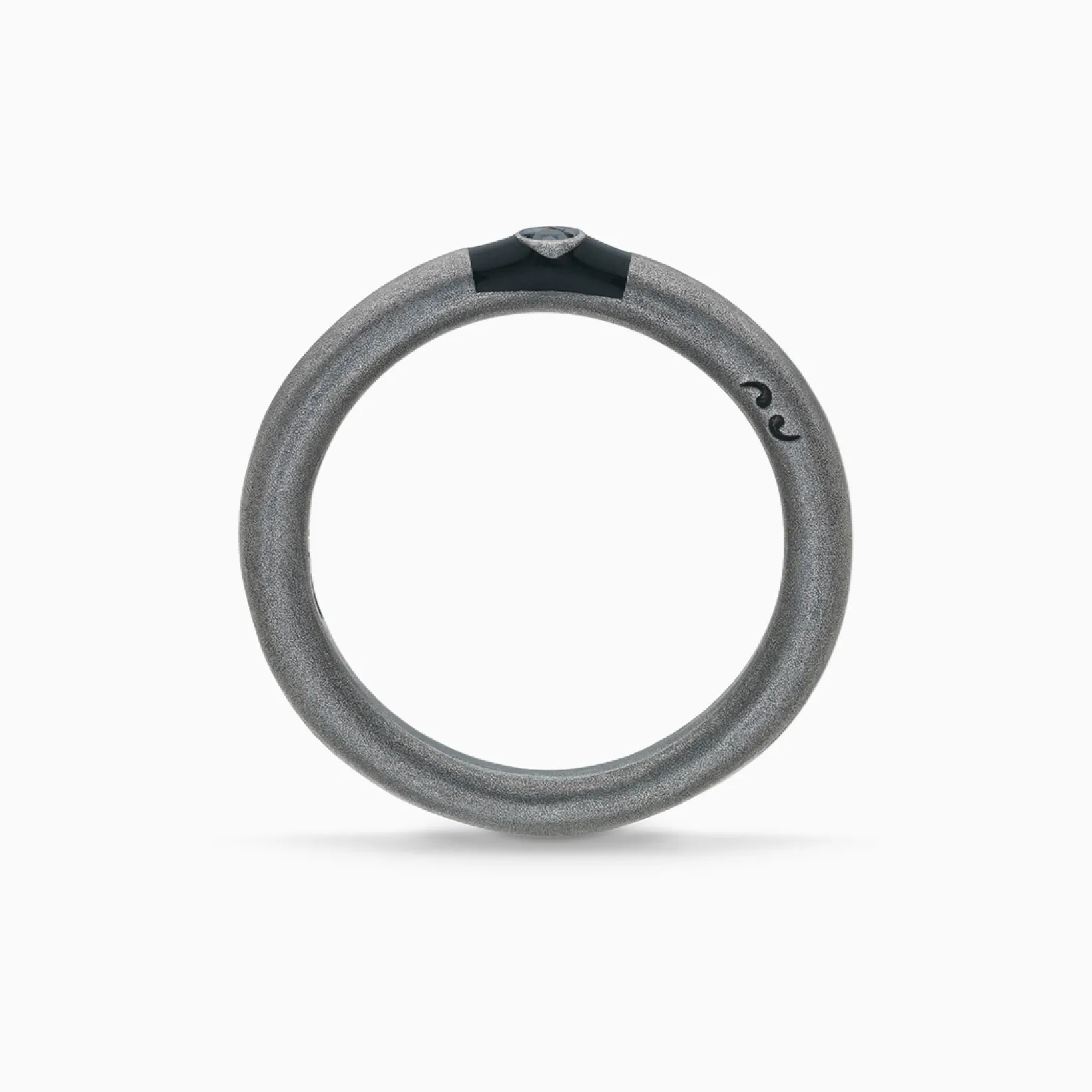 This refined ring features a sleek oxidized finish paired with black enamel and a 0.035 ct black diamond. Ideal for those who appreciate bold elegance.